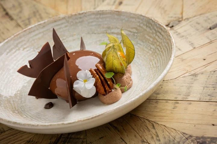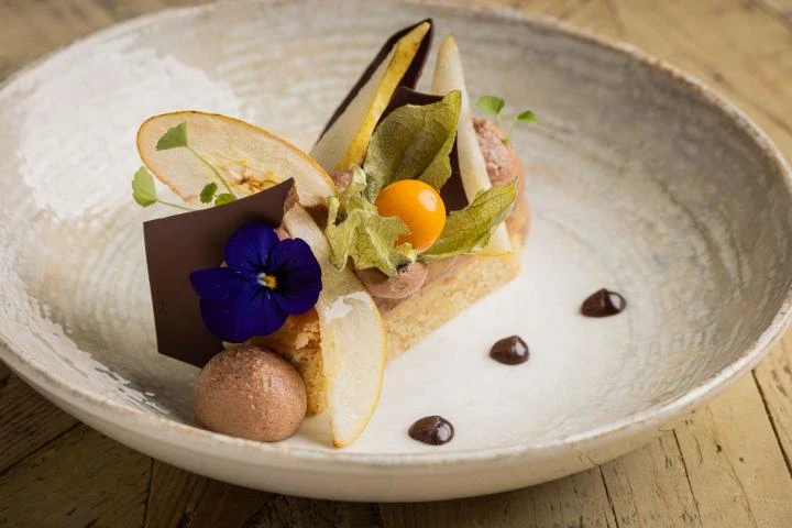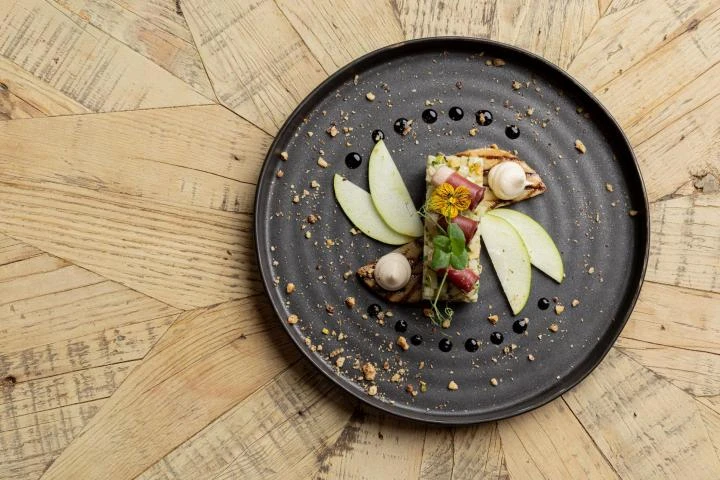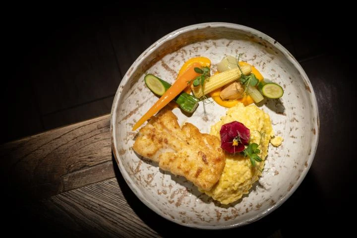 In the heart of Ribeauvillé, the Logis Hôtel du Mouton restaurant invites you to enjoy a gourmet experience combining Alsatian tradition and contemporary elegance. In a warm and friendly atmosphere, Catherine and Tanguy welcome you as if you were at home for a moment of pleasure and sharing. The dining room, with its chic bistro decor combining stone and wood, offers a refined, cosy setting for savouring sincere, inspired cuisine.